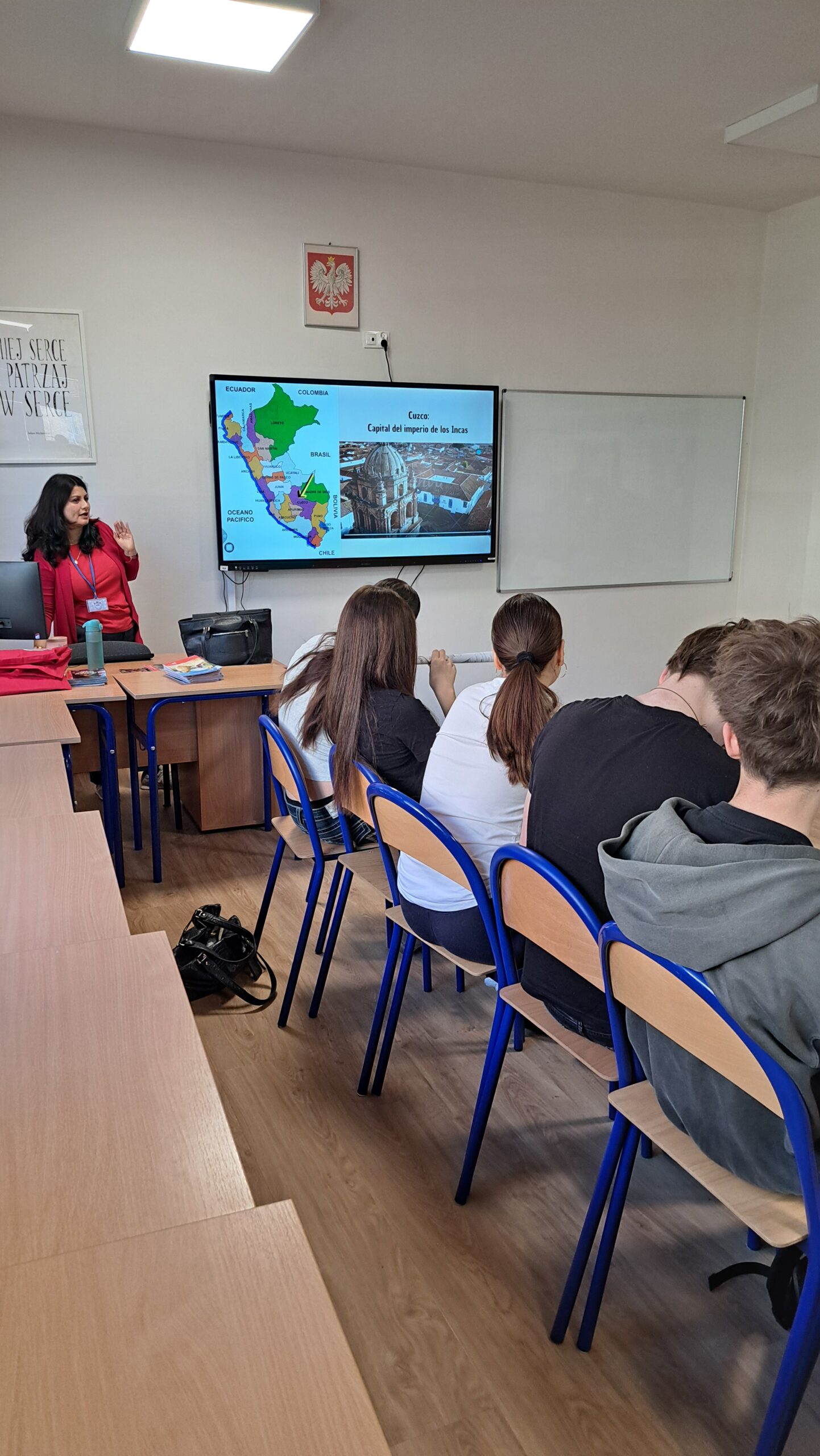 Uczniowie sekcji dwujęzycznej z j. hiszpańskim uczestniczyli w warsztatach przygotowanych przez p. Melvę Villar Rosales, która opowiadała o swoim kraju i ukazała go z zupełnie nowej strony.